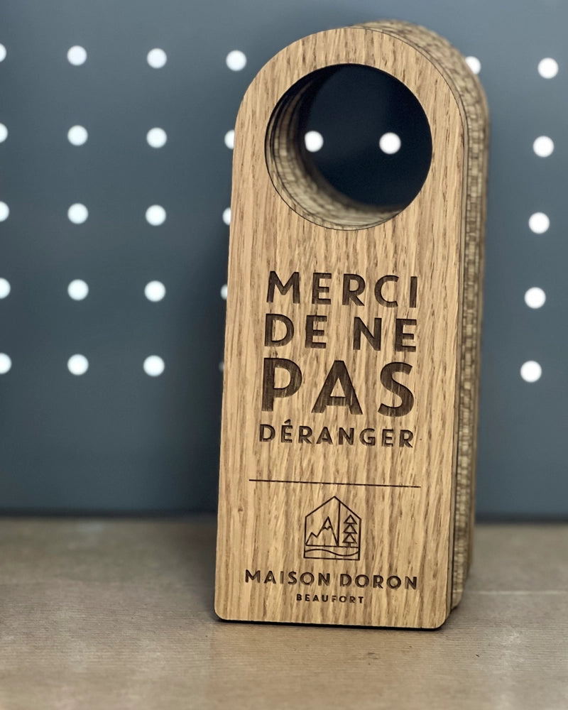 Faites graver votre accroche-porte avec le texte et le logo de votre choix pour un design unique à votre image. La gravure est réalisée avec précision, garantissant un rendu professionnel et durable.