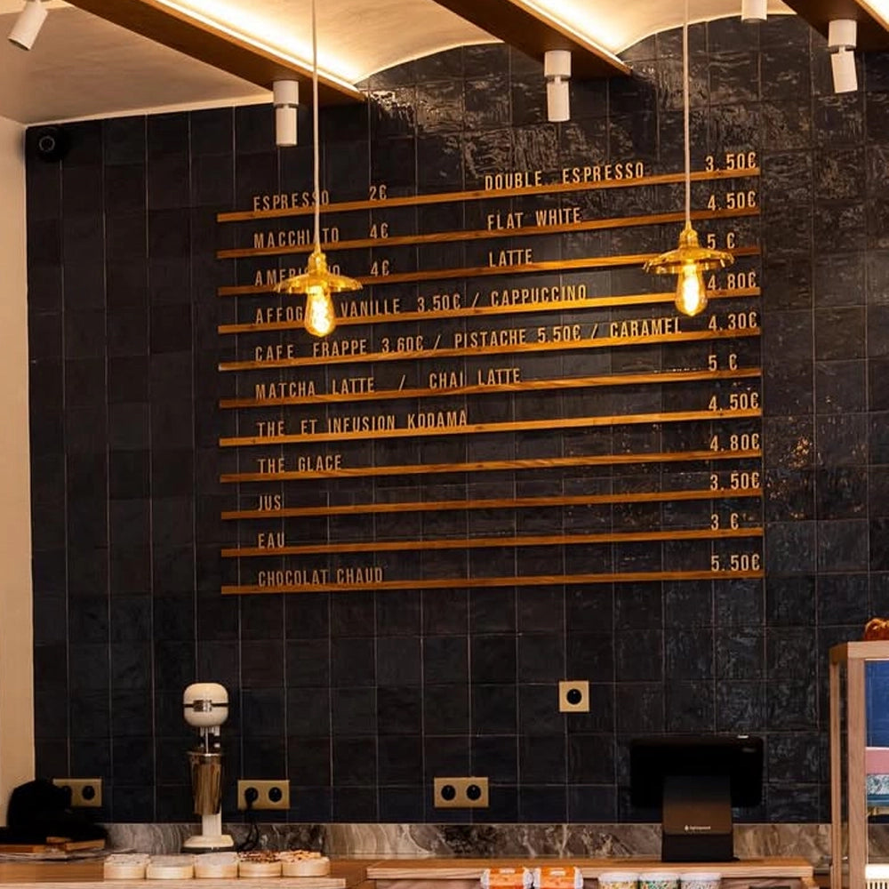 Ce menu mural en bois est bien plus qu’un outil de communication : c’est une signature visuelle qui renforce votre image de marque.