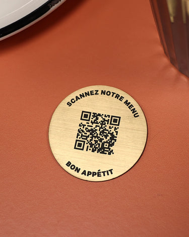 Pensée comme un véritable support de salle, cette plaque met en avant un message clair tout en intégrant le QR code au centre de la composition.